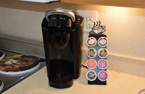 Enjoy complimentary k-cup coffee/snacks and more
