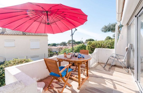 Located in a quiet area only 500m from the beach and the town centre, this spacious air-conditioned villa with WIFI has a beautiful sea view.