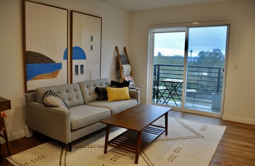 Enjoy a quiet stay just steps from the bustle of Capitol Hill's restaurant and nightlife scene in this top floor condo. Mornings can be spent on your private patio with views overlooking the city, Space Needle, Sound, and Olympic Mountains on a clear day. End your day either out on the town or have a night in and watch the sunset over the Olympics from the comfort of the couch.