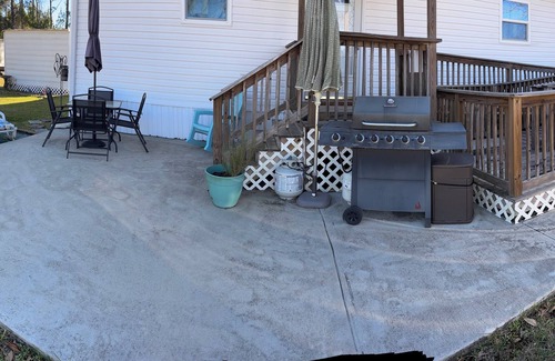 Step outside, and you'll discover a tranquil outdoor haven - a porch deck outfitted with patio furniture and an umbrella, complemented by lounge chairs, where relaxation is the order of the day. Indulge in weekend BBQs with the gas grill provided while enjoying the accessibility of a wheelchair ramp, which ensures everyone is welcome.
