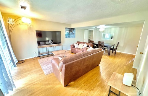 Experience Hinesville like a local in this 3-bedroom corporate apartment. Marvelous charm awaits guests with a king bed, queen bed, and bunk bed for a tranquil night's sleep. Enjoy the convenience of a washing machine, WiFi, iron, heating, AC, and a hair dryer. Make your holiday one for the books with a stay at our place.