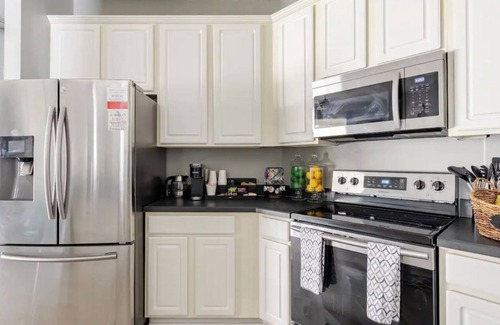 Families will appreciate kid-friendly amenities like a pack-and-play and highchair, while pet owners benefit from waterproof furniture covers. Just minutes from local dining favorites (First Watch, IHOP, Chipotle, Panera) and grocery stores, convenience is at your doorstep.