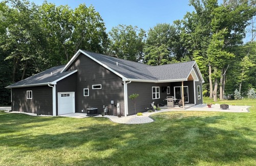 The exterior of the home has a grill, fire pit, dining table, outdoor TV (during summer months) and beautifully private undulating 1 acre lot with many mature trees. We also have ample parking for guests and 13 TV’s throughout the home with YouTube TV, MAX, Hulu, Netflix, and Amazon Prime.