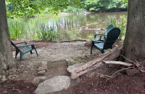 Charming, spacious 4BR, 1900 sqft riverfront home at end of dead-end road on 3 acres with a deep swimming hole, shady trees, orchard, & expansive lawn for playing, & relaxing. A peaceful 10-min walk (.5 miles) to Washington (inspiration for Stars Hollow!) w/ lovely bookstore, cafes, & farmer's market, and 1 mile from 1000-acre Steep Rock Preserve with endless hiking trails. A perfect vacation getaway!