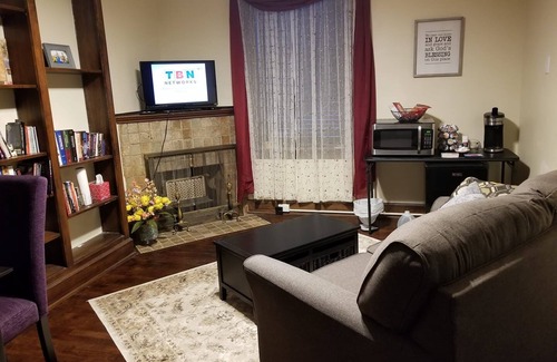 If you appreciate nostalgia and some chipped paint doesn't bother you, then you will enjoy this home! Use of 3 bedrooms, 5 beds and 1 sofa bed, 3 baths, library/sitting room, on 2nd floor. First floor kitchen, dining room, television room, large living room, enclosed back porch, and enclosed back yard. Off-street parking for 3 cars.(Garage not available) Normal family activity welcomed, no special events. Fireplaces/wood stove ornamental only. Bathroom 1 is tub/shower combo, sink/vanity, stool. Bathroom 2 has a tile shower, an antique sink, stool.No access to the loft or basement. Home serviced by Professional Security Company; Active cameras at entrances, No cameras on 2nd floor/bedrooms/bathrooms. Do not tamper with Security equipment. Self check-in / Self check-out with Keyless deadbolt entry. Please do not lock doorknob under the deadbolt.