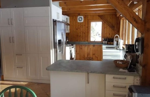 The house has a fully equipped large modern kitchen and a propane grill on the deck. Other amenities include high speed internet, a wood-burning stove in the living area and a Solo fire pit on the deck, with plenty of wood for both provided without charge. We also provide canoes and kayaks without charge.
