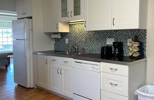 The full kitchen is ready for at home meals after a quick trip to the local grocery store or don't want to cook? Walk next door to the restaurant for some local flare for lunch or dinner.