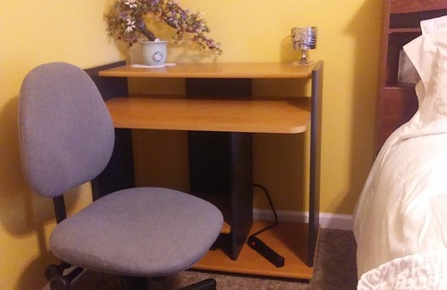 Toiletries and other amenities provided in bathroom for guest use. Includes use of kitchen and on-site parking. Quick access to all parts of town, nearby colleges and restaurants. Smoke detectors, carbon monoxide detectors and fire extinguisher on premises. Free WiFi available. Free bottled water provided.