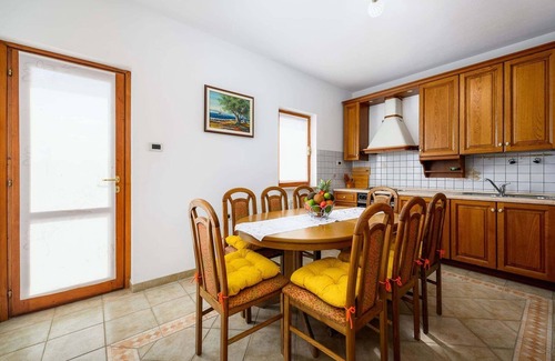 This cozy 3-bedroom apartment in Markoci offers a peaceful retreat for up to 8 guests (max. 6 adults). With 120 m² of space, it features a fully equipped kitchen, a private swimming pool, and a lush garden with outdoor furniture and a barbecue, perfect for relaxing or dining al fresco. Located in a quiet rural setting just 9 km from Labin and the beaches of Rabac, the apartment is close to essentials: a supermarket, bus stop, and restaurants are all within 1 km. The property includes a terrace, balcony, washing machine, air conditioning, satellite TV, and Wi-Fi. Open-air parking is available on-site. The kitchen is equipped with a gas/electric stove, fridge, freezer, microwave, oven, dishwasher, coffee machine, toaster, and all necessary cookware. A baby cot is available on request, making it ideal for families. Whether you're lounging by the pool or exploring Istria’s coast, this apartment offers comfort and convenience in a beautiful countryside setting.