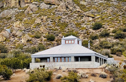 Experience unparalleled seclusion and artistic inspiration at this architecturally distinctive retreat, designed by Carl Day for the late Bob Biggs, founder of Slash Records. Nestled within 80 acres of the Tehachapi Mountains, this modern concrete fortress offers a unique getaway for creatives, nature enthusiasts, and those seeking tranquility. Enjoy a meal in your mini kitchenette, sprawl out on a cal king bed, see the moon from the hot tub, so many things to do or not do.