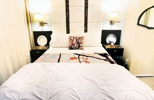 The JAPANESE CHERRY BLOSSOM SUITE follows the spirit of Washington DC's annual Cherry Blossom Festival. This spacious suite features a comfortable Queen size Cool Comfort plush mattress bed, a study table, a privately attached bathroom with a soaking tub, a sunny skylight, heated bidet seat and ample closet storage.
