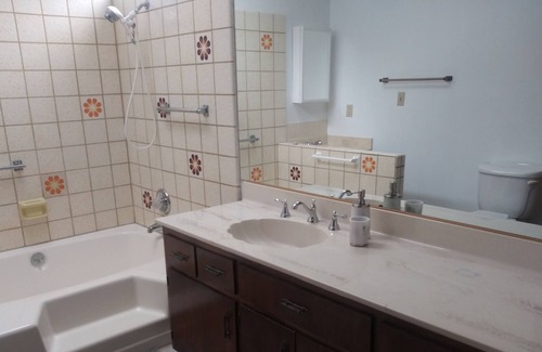 Charmer highlights: Master bedroom is the size of an studio with a convenient double-counter sink and a jacuzzi-type tub. Bedroom is spacious and sunny with a king size bed, and a portable "Pack n' Play" crib available. Bedroom number two features two comfortable twin size beds with a serene and minimalist decor. Bedroom number three offers a full size bed that easily fits two people. Bedroom number four has two entrance: from the patio through the glass sliding doors and from the inside the house. It features a queen size bed, full size chic day-bed with a twin trundle and a TV with Roku system. On living room a brand new leather sofa-bed can be use for an extra person. Play-room area is bright and spacious with a coffee table sliding top where toys are kept for little ones (I am a mom myself and i know play-rooms are a MUST when vacationing). Dinning room is a Norgaard extension dinning table from Scandinavian Design. Please note, dinning table can't accommodate more than 8 people. There is additional sitting in living area (four foldable additional chairs, plus an small table). Very conveniently there is assigned parking inside the property that accommodates up to three cars. All of the bedrooms have windows and closets. Linens & towels are new, plus silverware, dishes and kitchen utensils. Our charmer has brand new wood floors with fantastic natural light and a beautiful hill view. Our Richmond home is in a residential and family oriented neighborhood -perfect to welcome large families and/or group of people. Lots of room to spread out. Home decor is nice, modern with a bohemian twist.