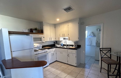 Close to restaurants, downtown, and the historic district, just blocks from Encanto Golf Course and Encanto Park, Great neighborhood for walking, Spacious cottage with a full kitchen, full bathroom, Kitchen table, washer, and dryer. King Bed along with optional upon request queen sofa sleeper if you have over 2 quests. Not to mention your own covered parking spot steps from your door. Small personal patio area.