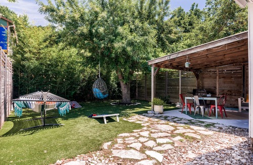 Spacious Desert Hippie Bungalow in Barton Springs! is located in Barton Hills. Spacious Desert Hippie Bungalow in Barton Springs! provides accommodation, featuring Internet, Laundry, TV, among other amenities. This House features Internet, Laundry, TV, to make your stay a comfortable one.