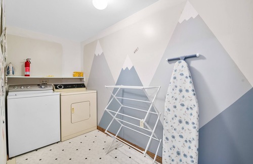 The well-equipped kitchen features modern amenities including an air fryer, making it a breeze to cook for the whole group whether you're preparing a big brunch or a cozy dinner after a long day outdoors.