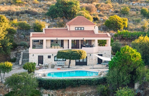 Spacious, Good Privacy, a Gorgeous Sea View, ideal for groups or large families. | Villa in chania