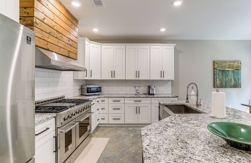 KITCHEN: Cooking basics, updated appliances, Cuisinart single-serve coffee maker (starter coffee provided), dishwasher, stove/oven, refrigerator, microwave, air fryer, blender, toaster, dishware & flatware