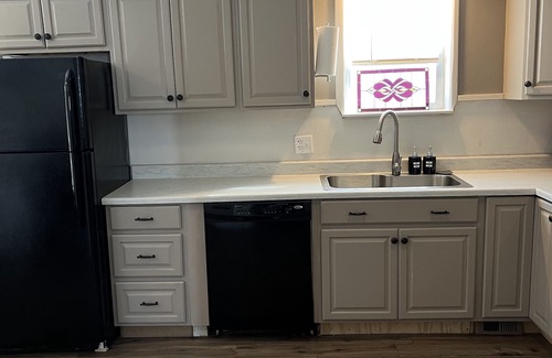 The Main Living Room is large and open containing a full-sized couch with attached chase, 2 separate love-seats and desk/work area. Ideal for a family looking to spread out or multiple families/friends that would like to share the house but still have their own space.