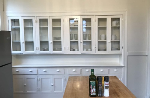 Built in 1916, The Grimsley House features original woodwork, mantels, moldings, and large living areas and bedrooms. All three upstairs bedrooms feature new queen sized mattresses, quality linens and views of the farm the house sits upon. A convenient kitchen connects to a breakfast room and a large formal dining room.