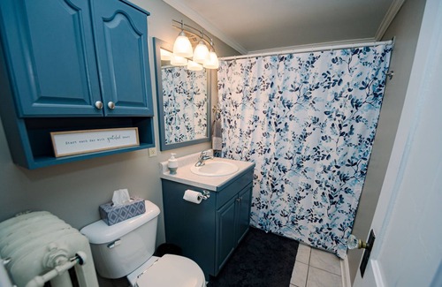 The home offers three bedrooms that can sleep up to eight people. Just around the corner is a full, shared bathroom. You are also welcome to use the kitchen, coffee station, dining areas, living room, TV, sunroom office, and half bath downstairs, as well as the washer and dryer down the stairs across from the half bath. Outside, you can relax on the patio furniture on the large back porch. See if you can find the laundry chutes, scratch your home state or country off the maps in the hall, and enjoy a hot mug of your drink of choice as you relax in a cozy home away from home!