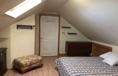 Lots of storage and two dressers, two closets, skylight in bedroom