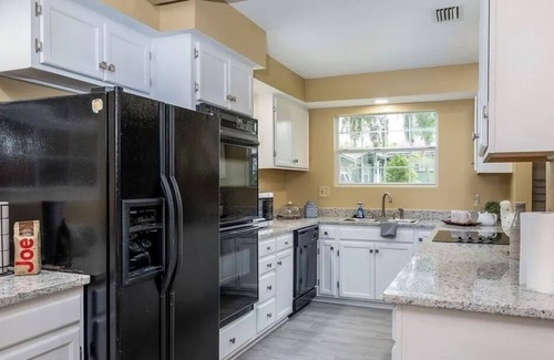 Welcome to our VRBO home! Enjoy a charming house with a pool near TIAA Stadium. The open layout offers a fully equipped kitchen, cozy living area, and dining space. Outside, a refreshing pool awaits, perfect for relaxation. The well-appointed bedrooms ensure a restful night's sleep. Located near TIAA Stadium, you'll have easy access to game days. Explore nearby dining options, shops, and entertainment. Experience Jacksonville at our idyllic home with a pool. Book now!