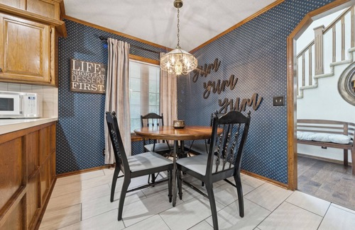 Spacious and welcoming, this home comfortably sleeps up to 16 guests- perfect for large family gatherings, group trips, or holiday celebrations. Conveniently located in East Wichita with quick access to 96 highway, you'll be close to shopping and dining. Enjoy evenings around the fire pit, friendly competitions with the pool table and arcade games, and plenty of room to relax and make lasting memories together.