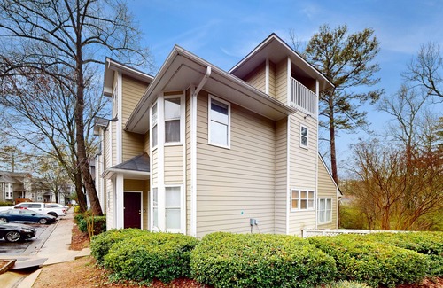 This tucked-away, mid-century-style loft features premium design and retro elements that make home feel a little less far away. Located less than four miles (under a 10-minute drive) from the famed Atlanta Braves Stadium/Battery, this condo also gives you easy access to a foodie's paradise. Other nearby landmarks include Cumberland Mall, Cobb Galleria, and Vinings, all just minutes away. You get the best of all worlds in this airy space, with access to a shared pool just a short walk from your condo.