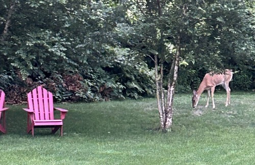 Spacious and private, built in 2018, includes RAV 4, heated, lit pool built in 2025; automatic cover, hot tub and lounging/kids area. Our beautiful, spacious, home is the perfect place for you to relax and truly enjoy the beauty of Nantucket. 5 BR, sleeps 11, 3 BA, LR, FR, DR, fireplace, large open, fully equipped kitchen with breakfast bar. Large dining room seats 8 and opens to a deck with furnishings and seating for 14 and a gas grill. The huge, private yard with heated pool and outdoor shower is surrounded by the natural growth, many hydrangeas ( and lots of deer)!. The Front covered porch with Adirondack chairs and a porch swing is bordered with hydrangeas and the perfect place to enjoy a glass of wine and watch the sunset.