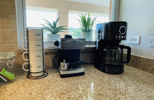 The kitchen comes equipped with all the essentials. Refrigerator, freezer, stove, oven, microwave, toaster, blender, all the dishes, glasses, utensils you need to make a serve during your stay. We include oils, water, coffee, tea, and spices for your convenience.