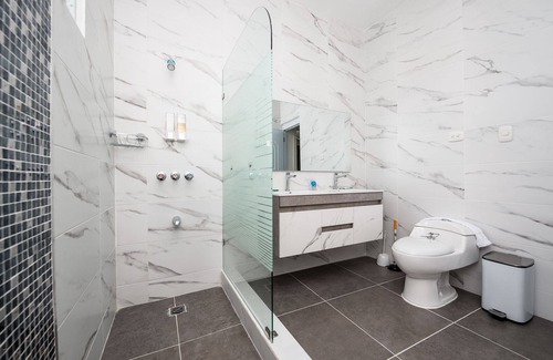 The Oasis Villa offers complete privacy, with its own 9-foot walls surrounding the property. Each bedroom comes with a private bathroom, TV, and air conditioning for your comfort. You’ll also enjoy 24-hour access to electricity, hot water, and Wi-Fi, so you can relax knowing all the essentials are covered.