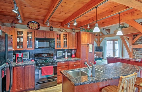 Situated on 40 private acres lies this spacious 5-bedroom, 3.5-bath Spearfish vacation rental! With its fully equipped kitchen, deck with mountain views, and private lake, this home is the perfect place for nature enthusiasts. Spend your days fishing from the lake, grilling out on the deck, or playing a game of horseshoes. Then, venture out to explore Wonderland Cave or enjoy a scenic hike at Bridal Veil Falls. Return home to end the night by the fire pit, roasting marshmallows under the stars!