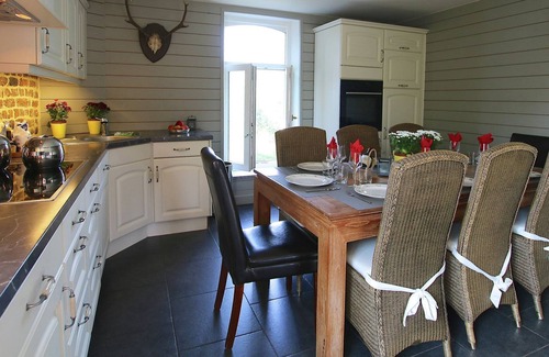 The mansion has a cosy sitting area with an open fireplace adjacent to the lovely, open kitchen and dining area. There is a playroom with a TV for the kids. You'll take in all the greenery around you from the garden, during the summer, you can go swimming in the Sauer. You may bring 1 pet at an additional cost.