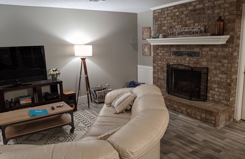 Cozy up in this quiet wooded Spring Lake Retreat! This property is a downstairs private guest suite with a private entrance, parking for up to 4 vehicles. Enjoy a bonfire in our large outdoor fire pit area. Relax and watch tv or connect to our fast wifi network. We are just 10 mins to downtown Grand Haven and 20 mins to downtown Muskegon. Enjoy the beaches, waterfront and quaint downtown shops and eateries. There is a kitchenette with small appliances for light cooking (microwave, large electric skillet and toaster oven).
