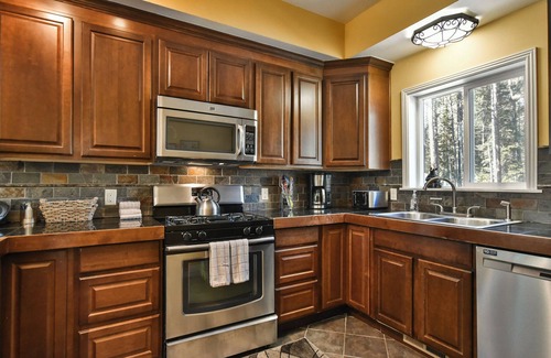 Step inside the spacious A-frame living room, where the vaulted ceilings create an open, airy atmosphere, perfect for relaxation and comfort. The cozy wood-burning stove is perfect for warming up after a day on the slopes, while the open-concept design allows for easy gathering and relaxation. The fully equipped kitchen and dining area are designed for sharing meals and making memories, with plenty of room to cook and dine together in comfort. The large back patio offers a peaceful space to unwind, with forested surroundings providing a natural backdrop that enhances the sense of seclusion.