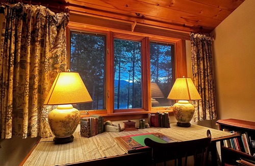 Return to serenity of Squam on this quiet cove in a comfortable family home. Home is located on a peninsula with over 800 feet of frontage. Spacious screened porch with extra large table for gatherings. Large dock with stairs to the water enjoyed by those who love swimming, boating or just relaxing. Primary, Upstairs bedroom includes skylight over the bed for stargazing, a sitting area and a workspace if you need it. There is also a loft area with 2 twin beds and a piano. The living area includes comfy sofas for conversation. The kitchen includes microwave, fridge, stove/oven, dishwashing is done by hand. Other amenities include a charcoal grill. Additional amenities, at a minimal cost, include use of tesla charger and host provided linens.