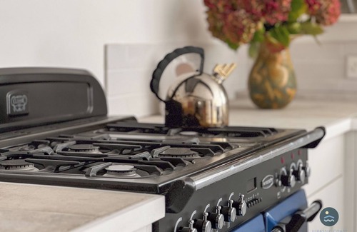 On arrival, you are greeted by the charming cottage exterior, with stone walls and wooden framed windows. Patio doors open in to the cottage style kitchen, complete with rangemaster cooker, dishwasher, Belfast sink with hot tap and freestanding fridge / freezer. The kitchen is open plan with the dining area, with large farmhouse style dining table and seating for eight. The living room is light and airy, with a wood burner and stairs that lead to a mezzanine floor above. The mezzanine has a sofa bed, which can be made up to accommodate 2 guests on request (please request at the time of booking). Also on the ground floor is a family bathroom, with freestanding bath and chequerboard floor. There is also a useful utility and boot room which houses the washing machine. Up to the first floor are three beautifully decorated bedrooms and two more bathrooms; The master king en-suite, a double bedroom and a twin bedroom which share the family shower room across the hallway.