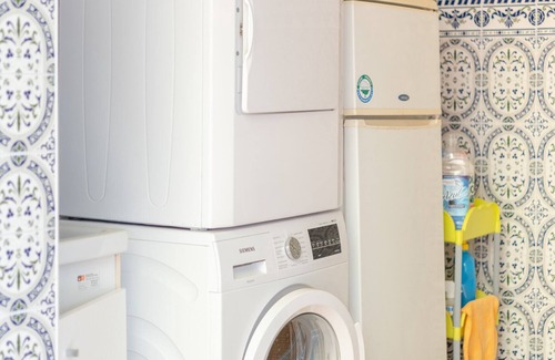The independent kitchen, with a ceramic hob, is equipped with a fridge, microwave, oven, freezer, washing machine, dryer, dishwasher, dishes/cutlery, kitchen utensils, coffee maker, toaster, kettle, plates and bowls, kitchenware.