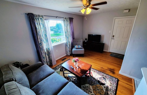 The apartment building is located in a well-lit and safe area with exterior doors that stay locked. Avoid expensive parking near campus/downtown by utilizing the off-street parking spaces provided behind the building for guests only. One space per apartment. A few minutes walk will put you at the nearest bus stop where you can utilize public transportation to traverse across Lexington. When it's time to drive out to explore all the scenic and beautiful locations across Kentucky like the Gorge or Mammoth Cave, your vehicle will be waiting for you there safely. Don't forget to explore the Bourbon Trail during your stay! Once you're ready to relax and unwind, you'll find that the apartment is equipped with all the conveniences you need to recharge in comfort. A large flat screen smart TV is there for your convenience. Utilize your favorite streaming services to catch up on your favorite programs while lounging on the couch. Rest easy knowing that each apartment has adjustable AC/heat and each room is equipped with blackout shades and a box fan which is useful for white noise. Night owls and early risers will also appreciate the coffee maker located in the full kitchen. Whether you plan to eat out and dine at local restaurants or prepare your own meals, you'll be set during your stay. It would be our pleasure to provide any recommendations and tips during your stay. Feel free to reach out to us anytime!