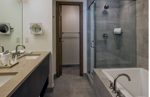 With a total of 1,300 square feet, the two-bedroom Breckenridge residences sleep eight and feature king beds in both bedrooms, a large soaking tub in the master bathroom, second full bathroom in guest suite, half bathroom in living area, two queen sleeper sofas, flat-screen TVs, a fireplace and a washer/dryer. Every two-bedroom Breckenridge residence at the Grand Colorado on Peak 8 offers spacious living areas, thoughtfully-designed furnishings and lock-off flexibility that will bring a superior level of sophisticated living to every experience.