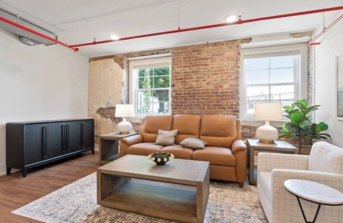 Welcome to The Squad Room — a spacious 2-bedroom suite at Southern Blue, named in honor of the building's former life as McMinnville's police station. This ground-level unit features tons of room to relax, a cozy walkthrough office, and is just steps from our on-site restaurant. Perfect for groups or families who want comfort, convenience, and a touch of history. Stainless appliances and exposed brick.