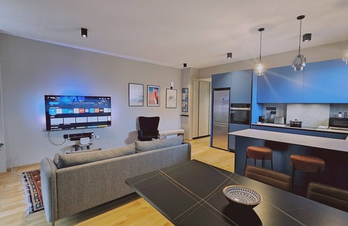 This modern 2 bedroom apartment with a bright and airy living space, thoughtfully designed to create a calming ambiance is the perfect place to call home for both holiday and business travelers.