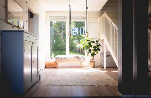 Nearby, two cafés and a small art centre are within walking distance. A wonderful coastal drive leads to Gumbostrand harbour with restaurants, galleries, and a local brewery shop. Beaches, national park trails, and local restaurants are all easy to reach by car.