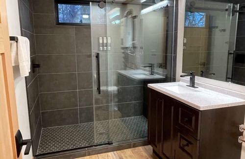 Steelhead can sleep up to six people with 2 bedrooms each with a queen bed and queen sofa bed in living room. The cabin has one bathroom with a large well lit tile shower and an on demand hot water heater which means you never run out of hot water. A complete kitchen has a refrigerator, gas range, microwave and cooking utensils for your use. The loft has an over stuffed chair and great view of living space as well as outdoors, great for reading a book or relaxing. Large windows and a wrap around deck opens the living space up to the outdoors giving this cabin a sense of bringing the outdoors inside. A Smart TV is available with access to free movies and news as well you can login using your Netflix or other On-demand services for viewing your favorite programs. FISHING ACCESS: although this property does not offer any private river access, there are two public access locations close by, Moose Meadows public docks is about 1/2 mile up the road as well as a boat launch about 200 yards from the property.