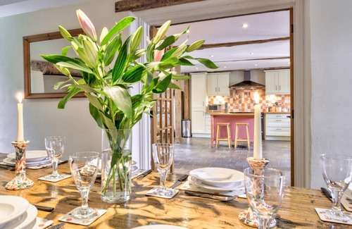 This impressive property is in a delightful, rural location tucked away in the hamlet of Middle Marwood,10 minutes drive from Braunton and just a little further from the fabulous beaches of Saunton, Croyde and Woolacombe.This very spacious, detached c18th farmhouse & barn conversion has been lovingly renovated with many modern features added, yet retains its rustic character and charm. Those wanting to indulge their culinary credentials will love the well-equipped and sociable kitchen and wonderful dining room. Stepps Farm has a games room, two living rooms (one with log burner) and 5 impressive bedrooms. Outside isa lawned garden and a patio area and access to a meadow. The property is perfect for families, extended families or groups of friends, at any time of year.