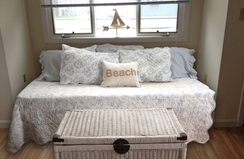 2 room cottage has a bedroom with queen size bed, and kitchen/living area with a queen size sofa bed and a one chair and a half twin sleeper. Sleeps 4. Recently renovated, light, bright and airy. Covered porch to enjoy the breeze. Across the street from Scituate Harbor, walking distance to the Scituate Yacht Club and just 5 houses away from Scituate Lighthouse and a short walk to SandHills Beach. Well-behaved pet friendly. Located halfway between Boston and Cape Cod, near commuter rail.