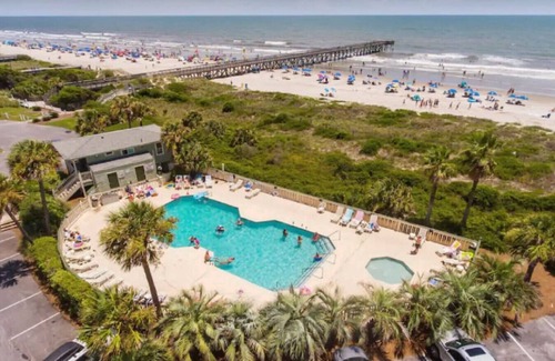 Make your next vacation unforgettable with a stay in our charming beachfront condo with privates beach access, a pool, and the only pier in town! Enjoy watching the sunrise from the balcony or take a stroll along the beach to feel the sand between your toes. After a long day of sunbathing, your fully equipped kitchen and comfortable living room provide the perfect setting for enjoying a family meal or game night. Don't feel like cooking? The shops and restaurants of IOP are steps away!