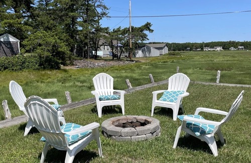 Two-bedroom, one-bath beach bungalow situated on Rachel Carson Wildlife Refuge offering incredible marsh views, sunsets, privacy and serenity. Less than a block away from the quiet, west end of the beach. Sun filled, open concept living offers plenty of room for family enjoyment. Great yard for nightly cook-outs and making s’mores by the fire pit. Recently updated and beautifully decorated.