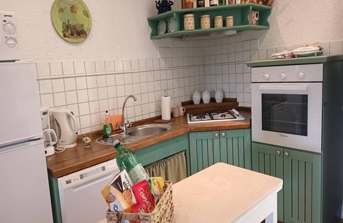 Layout: Ground floor: (open kitchen(dining table, hob(1 ring stove, electric), hob(3 ring stoves, gas), electric kettle, toaster, coffee machine, oven, grill, microwave, dishwasher, fridge-freezer), bathroom(shower, bidet, hairdryer)) Basement: (Living/diningroom(TV(satellite), seating area, DVD player, radio, CD player), bedroom(double bed), bedroom(double bed)) Parking, Whirlpool, washing machine, air conditioning, terrace, terrace, garden, garden furniture, sun loungers, BBQ, parking, parasol, high chair, ironing board, iron, Garden shed, baby crib(free)