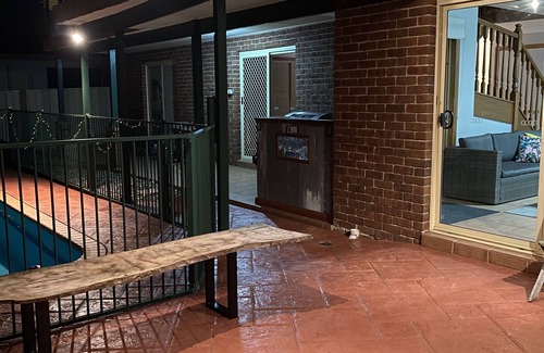 2 bedrooms separate downstairs accommodation with room for extra bedding. lounge room, patio, undercover veranda, outdoor sofa lounge, bar by the pool, 5 burner bbq, bathroom, laundry, outdoor tables and chairs, sloping backyard behind pool area, pet friendly. Upstairs of house may be occupied at times of reservation’s. Gym equipment available upon request, mini putt putt strip between balcony and pool, quiet street with childrens park opposite house, free wifi.